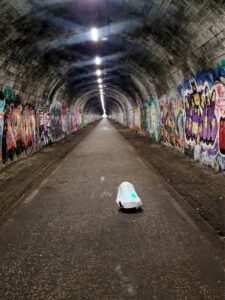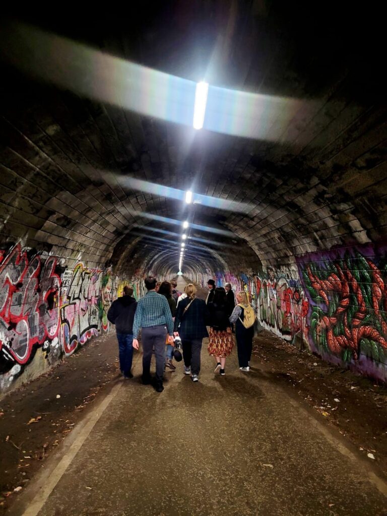 There were also a few unexpected encounters on the way. We saw a fox, a flock of magpies, a bull… and we stopped to sing happy birthday to someone in the Innocent Railway Tunnel.